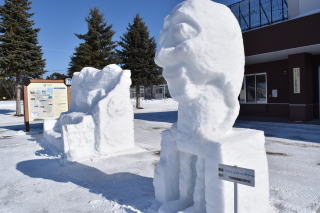 網走駅でバスが待ってますのでそれに乗り換え,道の駅メルヘンの丘めまんべつ(小さいですが雪像がありました)に寄った後,「メルヘンの丘」に立ち寄ります。