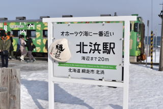 網走駅から「流氷物語号」で北浜駅でやや長時間停車の後,知床斜里駅に着きます。