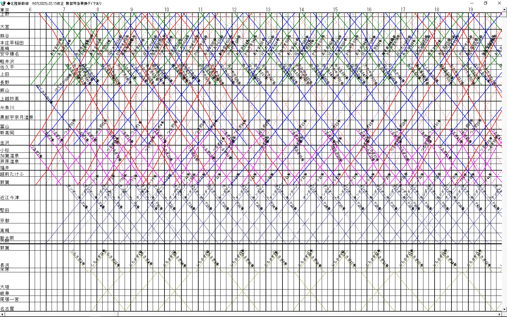 前年までのデータでは,直江津以北の特急「しらゆき」のデータがありましたが,今回金沢〜敦賀間データも一括しましたため,見にくくなりましたのでやめました。