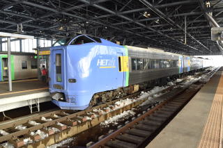 写真上は旭川駅に停車中の特急です。(札幌から乗ってきたのは後ろの緑の車両です)