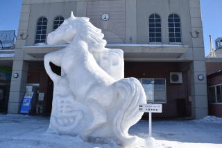 網走駅でバスが待ってますのでそれに乗り換え,道の駅メルヘンの丘めまんべつ(小さいですが雪像がありました)に寄った後,「メルヘンの丘」に立ち寄ります。