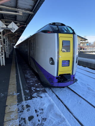 釧路から南千歳まで,特急「おおぞら」で向かいます。帯広をすぎ,石勝線の狩勝峠をすぎたあたりから雪になり,南千歳駅では大ぶりの雪になってしまいました。道東と道央の天候はかなり異なるようです。
